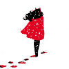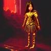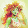 Description: A being with the head and arms of a woman and the hindquarters of a leopard crouches to drink from a pond. Her reflection is entirely a leopard.